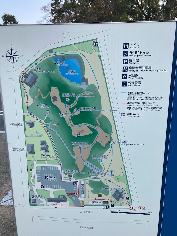 和歌山城のアクセス性を考えるのと、園内にある茶室や長屋門といった歴史的な要素との整合性も考えると、
